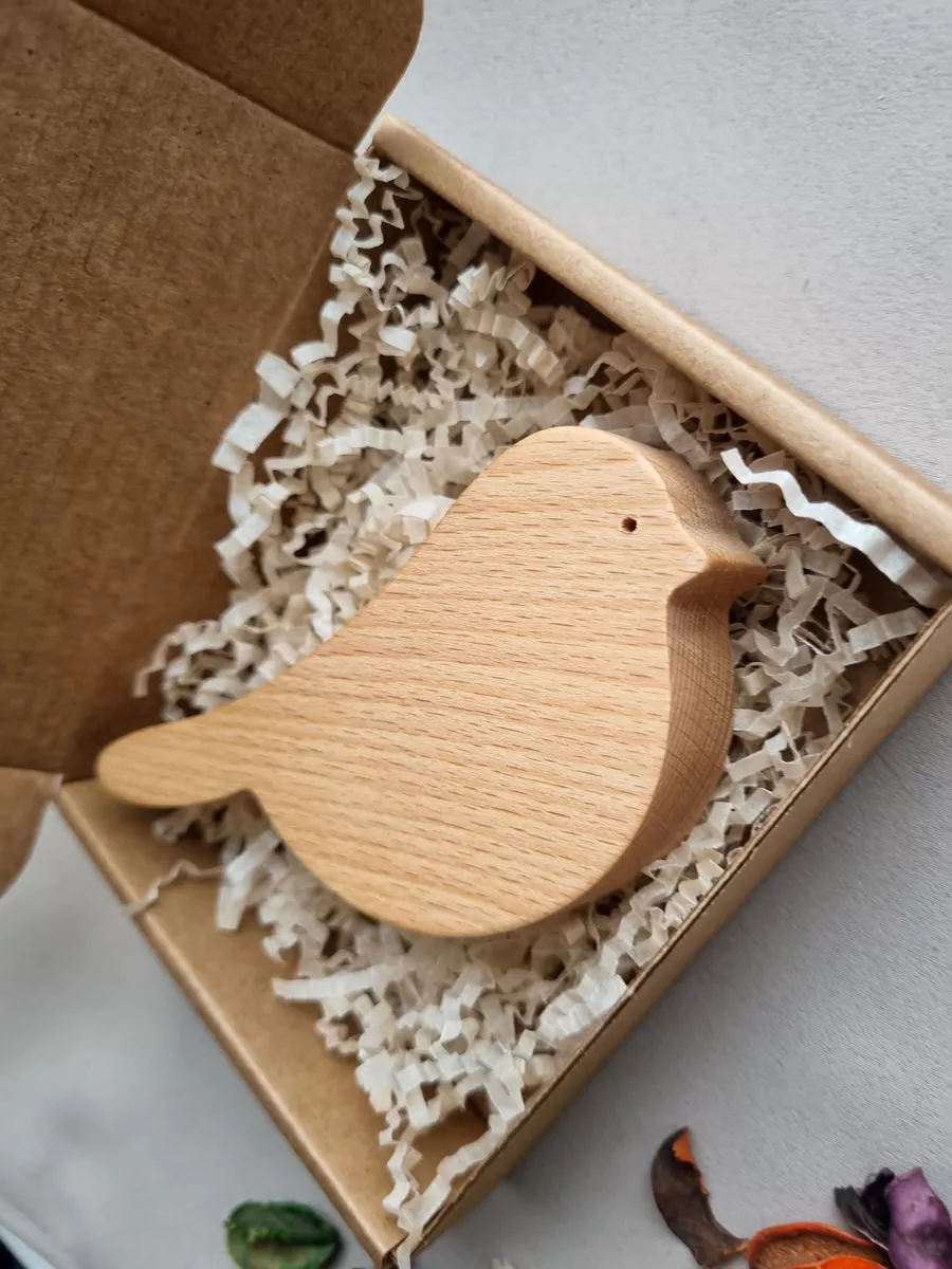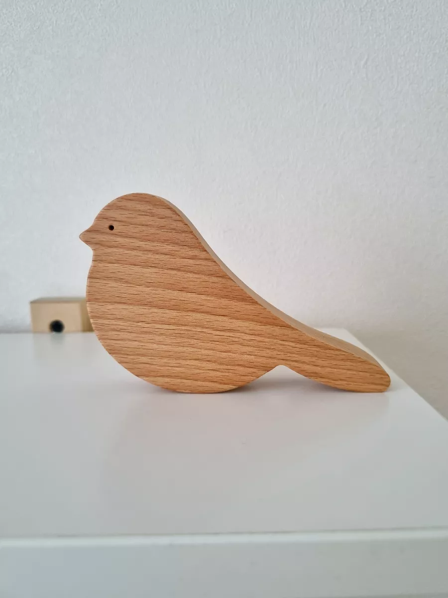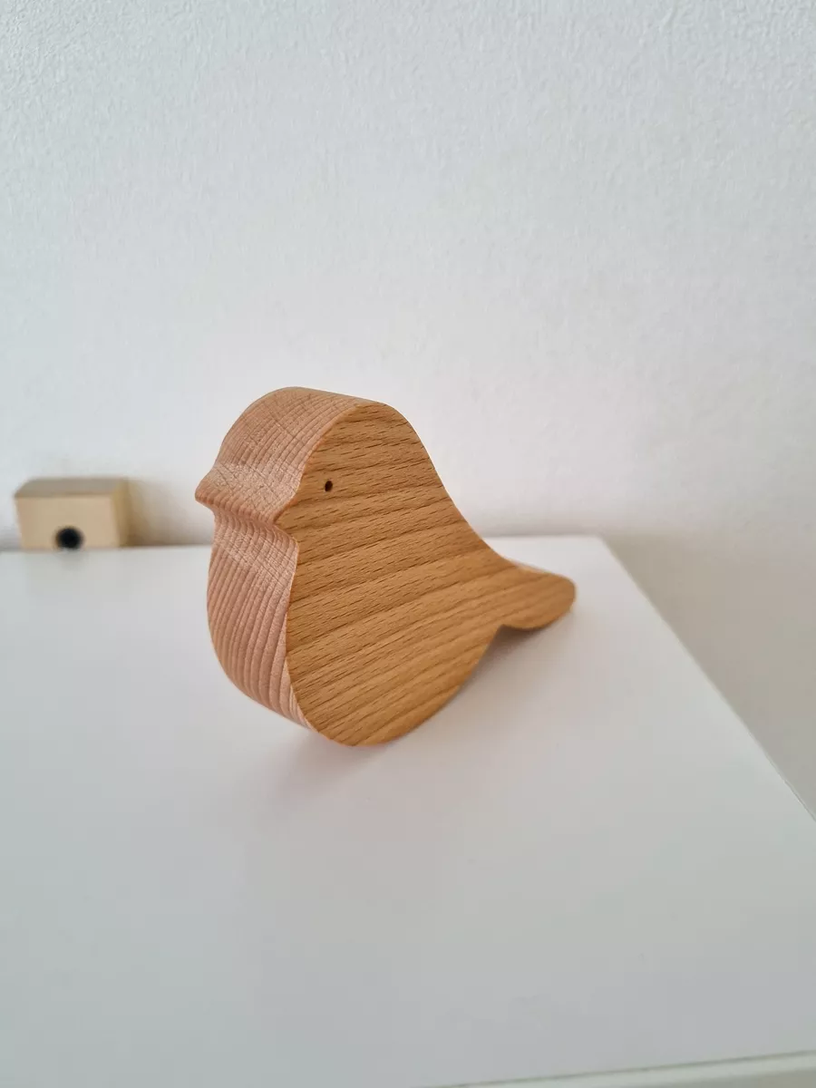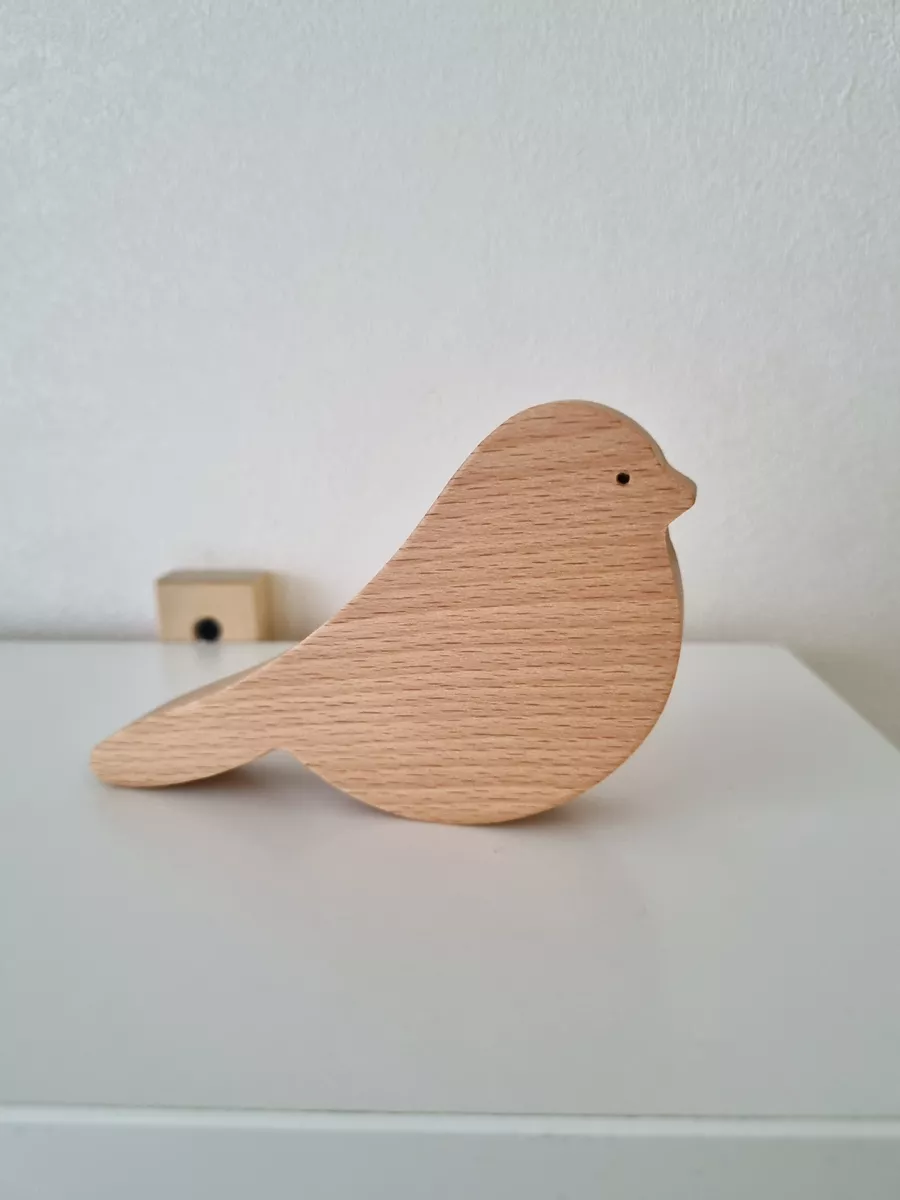 A natural wood bird figurine will enhance your interior. The bird figurine is crafted from beech wood, carefully sanded, and treated with natural linseed oil.